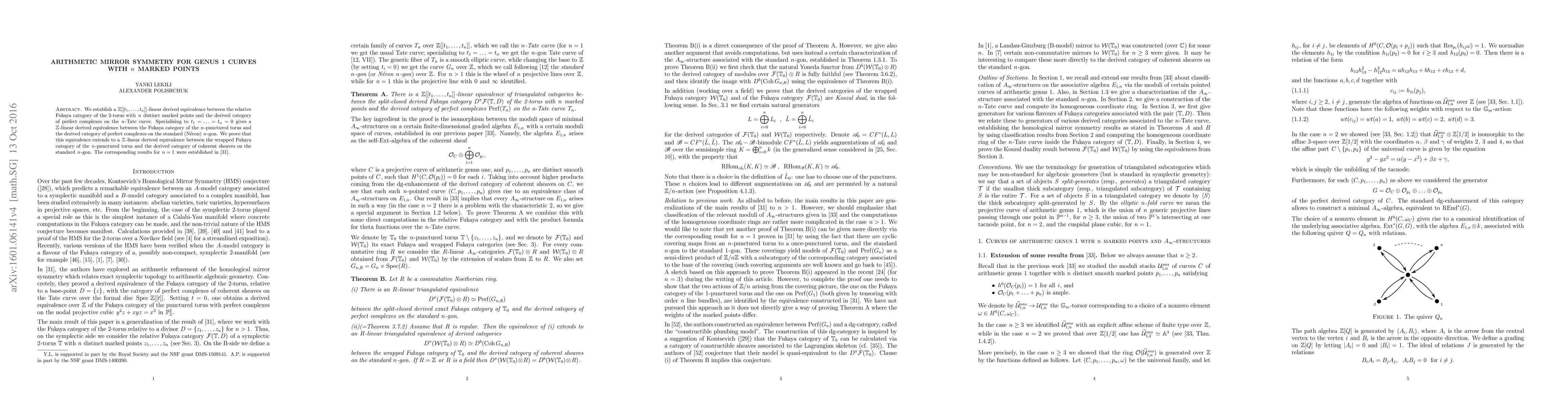 We establish a $\mathbb{Z}[[t_1,\ldots, t_n]]$-linear derived equivalence between the relative Fukaya category of the 2-torus with $n$ distinct marked points and the derived category of perfect complexes on the $n$-Tate curve. Specialising to $t_1= \ldots =t_n=0$ gives a $\mathbb{Z}$-linear derived equivalence between the Fukaya category of the $n$-punctured torus and the derived category of perfect complexes on the standard (N\'eron) $n$-gon. We prove that this equivalence extends to a $\mathbb{Z}$-linear derived equivalence between the wrapped Fukaya category of the $n$-punctured torus and the derived category of coherent sheaves on the standard $n$-gon.