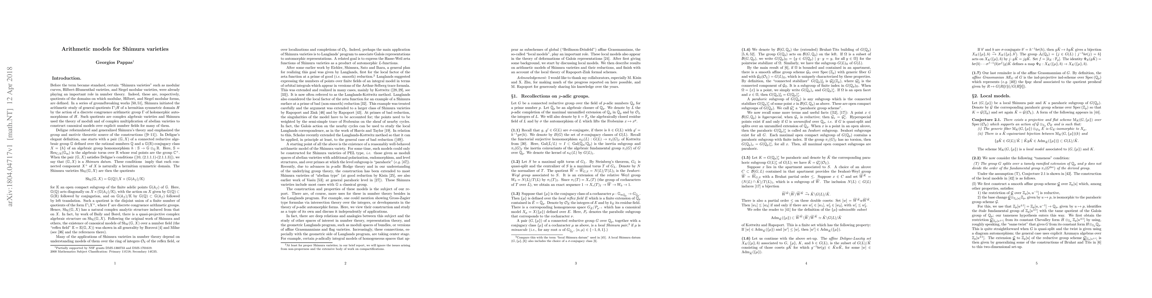The paper discusses the development of arithmetic models for Shimura varieties, detailing recent progress and methodologies in their construction for extensive classes. These models are crucial for advancing the understanding and study of Shimura varieties.