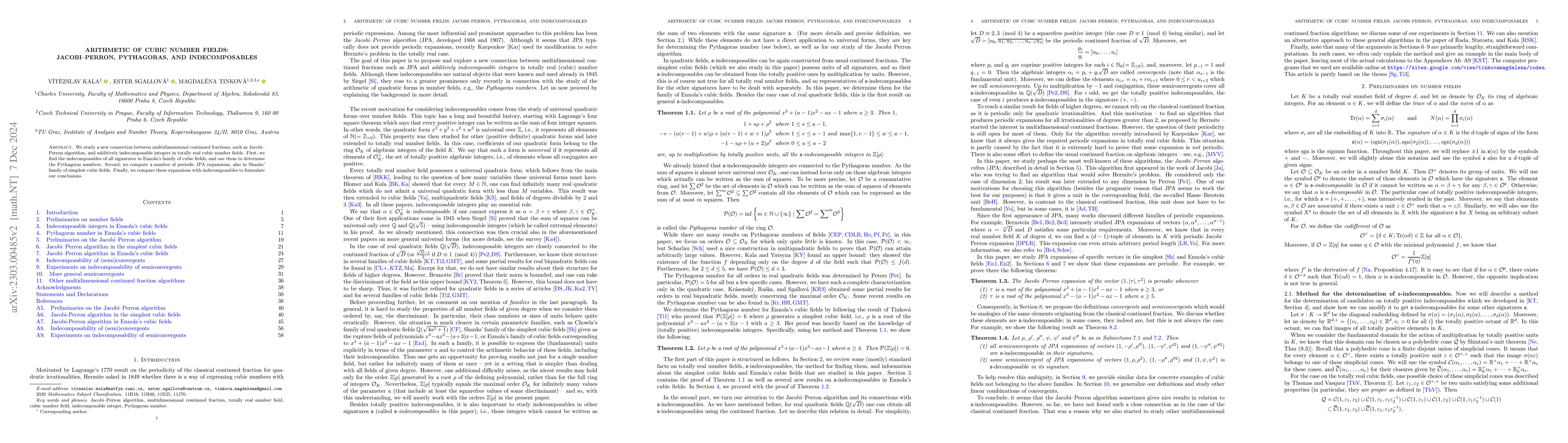 Summary: This paper explores the relationship between Jacobi-Perron algorithm expansions and additively indecomposable integers in cubic number fields, determining Pythagoras numbers and periodic expansions in Shanks' simplest cubic fields. The study concludes by comparing these expansions with indecomposable integers.