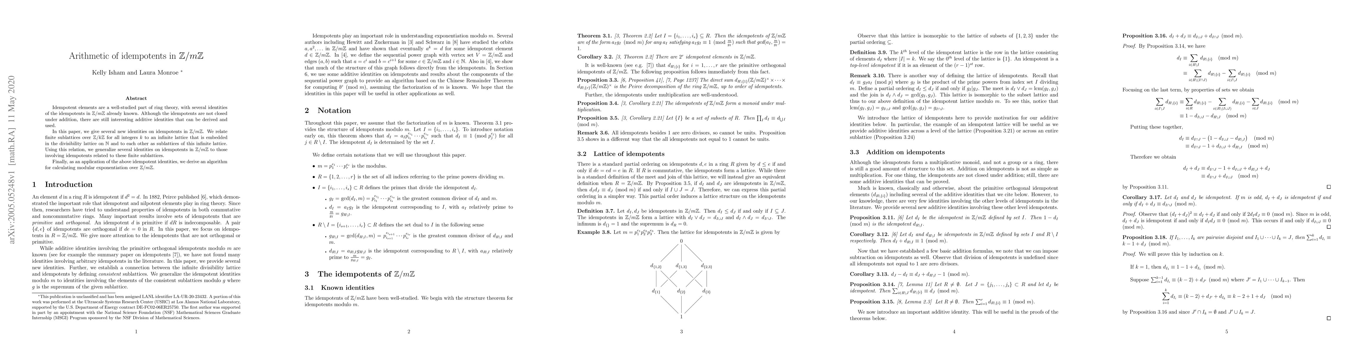 This research contributes to the understanding of arithmetic properties of idempotents in quotient rings, which has implications in number theory and cryptography, particularly in modular arithmetic operations.