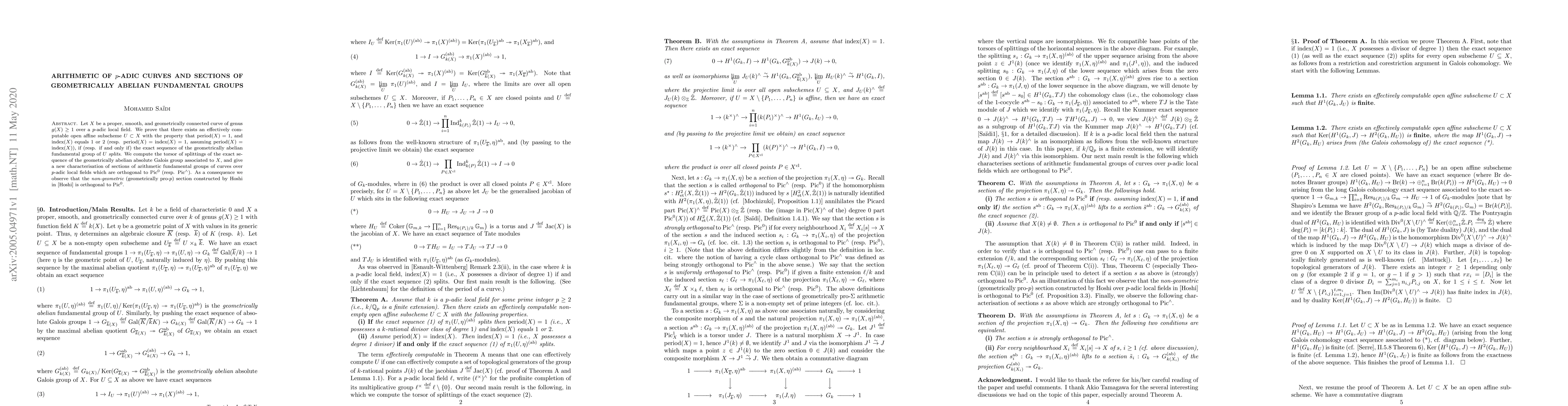 Summary: The paper establishes conditions under which an open affine subscheme of a $p$-adic curve exhibits a period index of 1 or 2, linked to the splitting of the geometrically abelian fundamental group, and provides a new characterization for sections orthogonal to $Pic^0$. It also confirms that a non-geometric section by Hoshi is orthogonal to $Pic^0$.