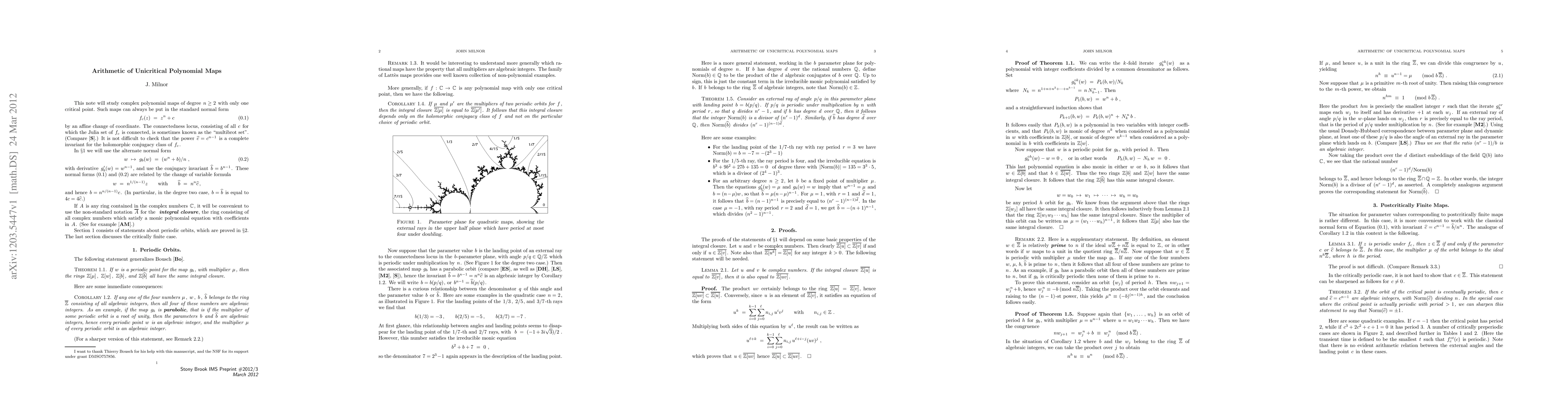 This paper explores complex polynomial maps with a single critical point, focusing on their arithmetic properties and implications for dynamical systems theory.