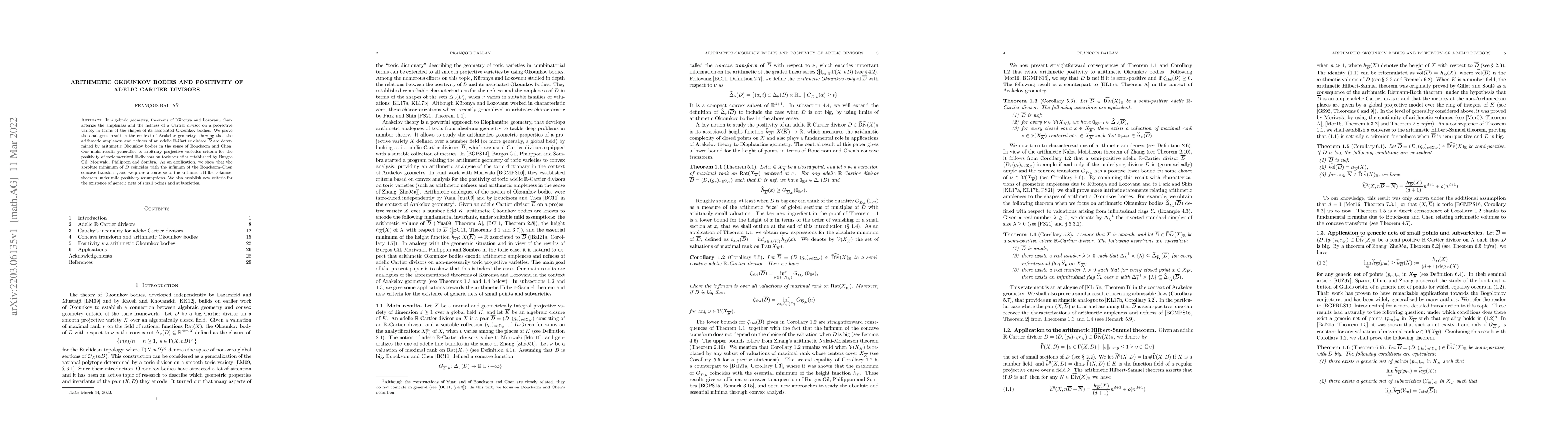 The paper proves that the arithmetic ampleness and nefness of adelic $\mathbb{R}$-Cartier divisors are determined by arithmetic Okounkov bodies, generalizing existing results for toric varieties and establishing new criteria for the existence of generic nets of small points and subvarieties. It also provides a converse to the arithmetic Hilbert-Samuel theorem under mild positivity assumptions.