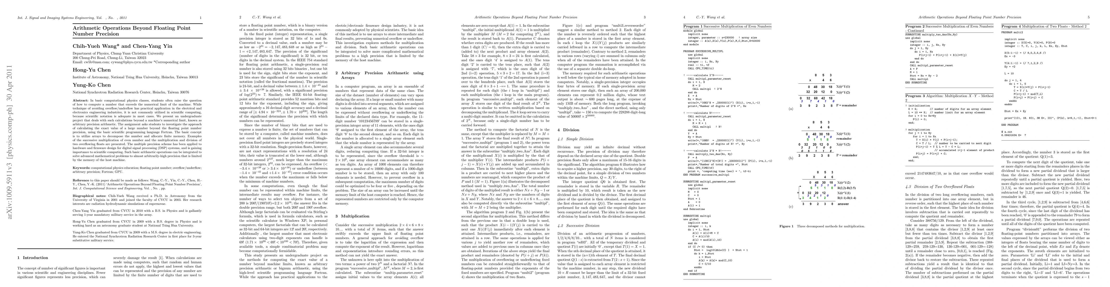 This paper presents an undergraduate project on arbitrary precision arithmetic to compute numbers beyond floating point precision using Fortran. The study employs arrays to decompose large numbers, demonstrating practical applications in digital signal processing and scientific computing.