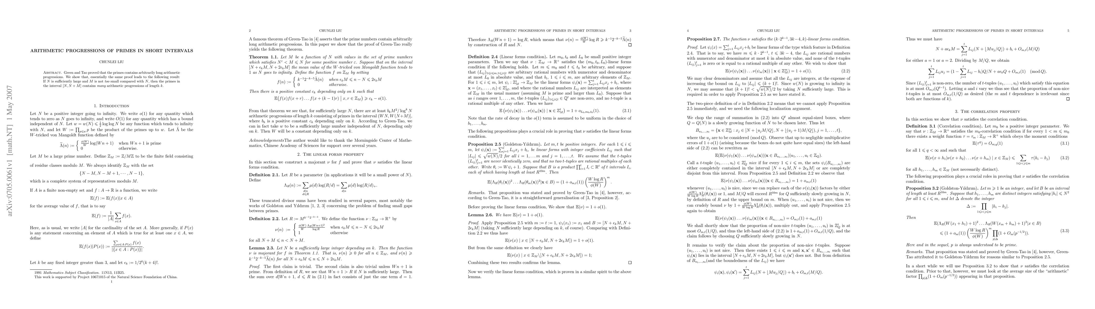 Summary: Green and Tao's proof of long arithmetic progressions in primes can be adapted to show that short intervals within the primes contain numerous arithmetic progressions of any specified length. This extends the understanding of prime distribution in smaller segments.