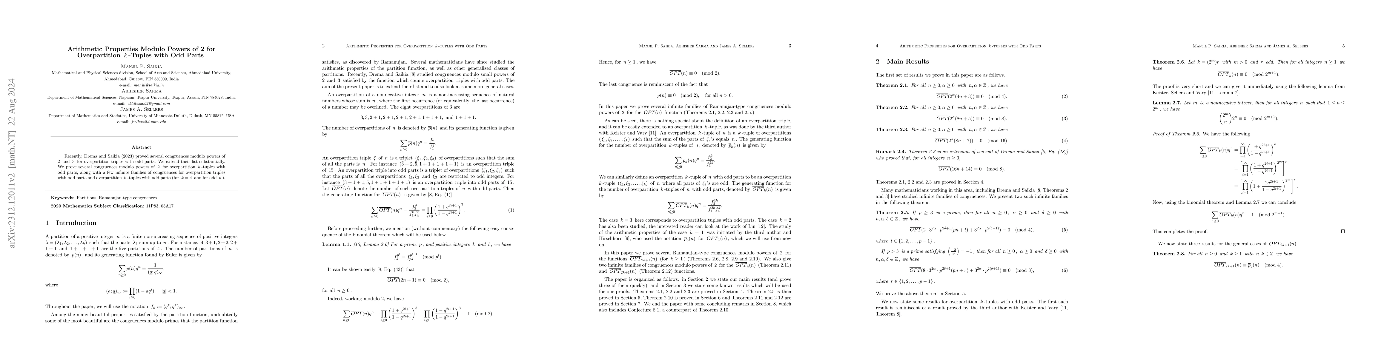 This paper extends congruence results for overpartition k-tuples with odd parts, proving new congruences modulo powers of 2 and introducing infinite families of such congruences for overpartition triples and k-tuples (specifically for k=4 and odd k).