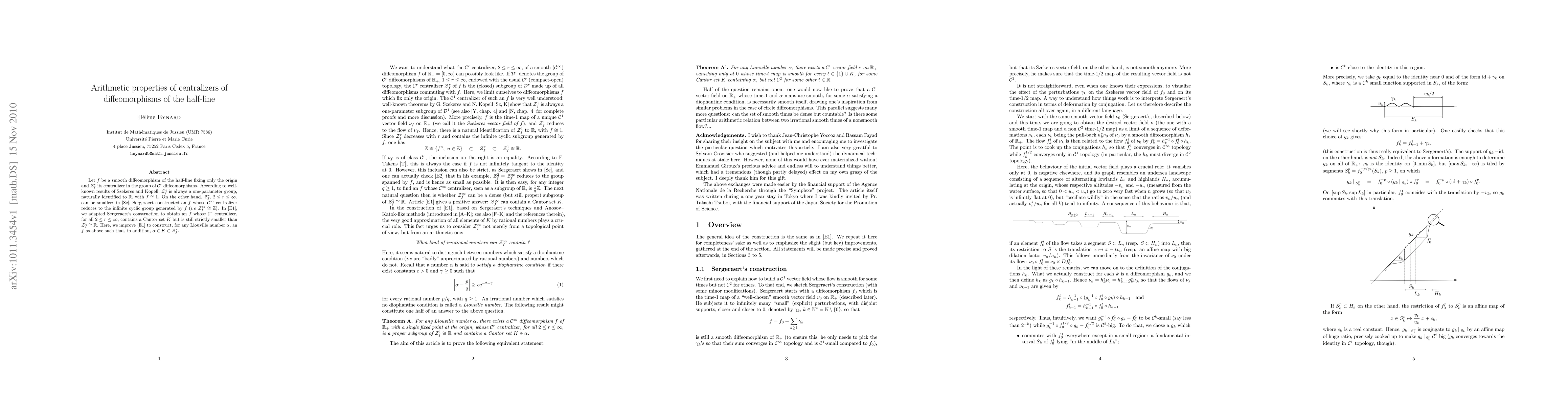 Let f be a smooth diffeomorphism of the half-line fixing only the origin and Z^r_f its centralizer in the group of C^r diffeomorphisms. According to well-known results of Szekeres and Kopell, Z^1_f is always a one-parameter group, naturally identified to \R, (with f identified to 1). On the other hand, Z^r_f, for r greater or equal to 2, can be smaller: in [Se], Sergeraert constructed an f whose C^infty centralizer reduces to the infinite cyclic group generated by f (i.e Z^\infty_f identifies to \Z). In [Ey1], we adapted Sergeraert's construction to obtain an f whose C^r centralizer, for all r between 2 and \infty, contains a Cantor set K but is still strictly smaller than Z^1_f (= \R). Here, we improve [Ey1] to construct, for any Liouville number alpha, an f as above such that, in addition, alpha belongs to K.