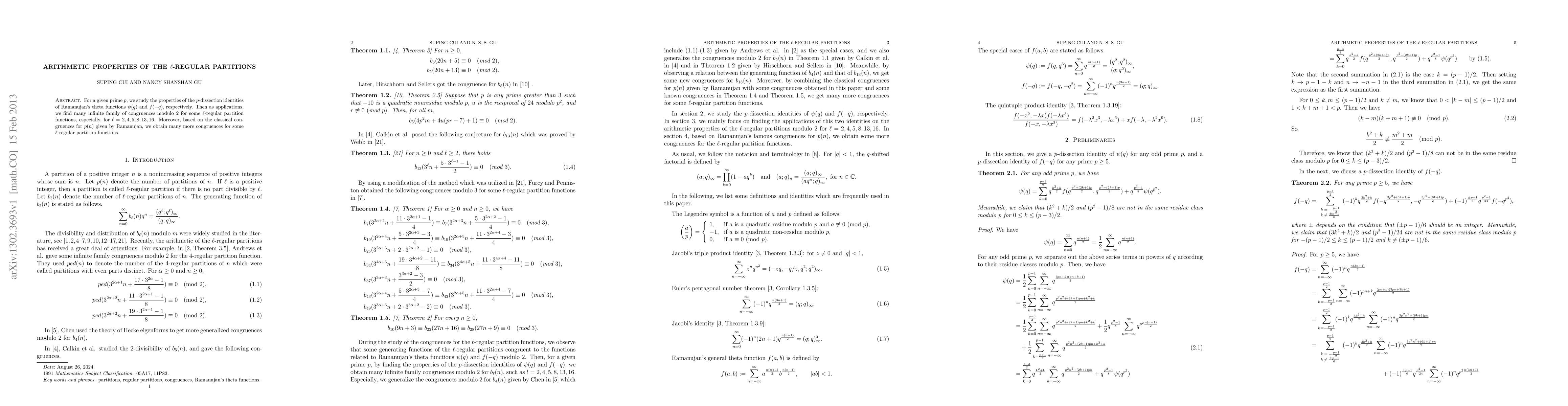 This paper investigates the $p$-dissection identities of Ramanujan's theta functions and explores their arithmetic properties, leading to the discovery of infinite families of congruences modulo 2 for $\ell$-regular partition functions, particularly for $\ell=2,4,5,8,13,16$. It also extends classical congruences for $p(n)$ to these $\ell$-regular partition functions.