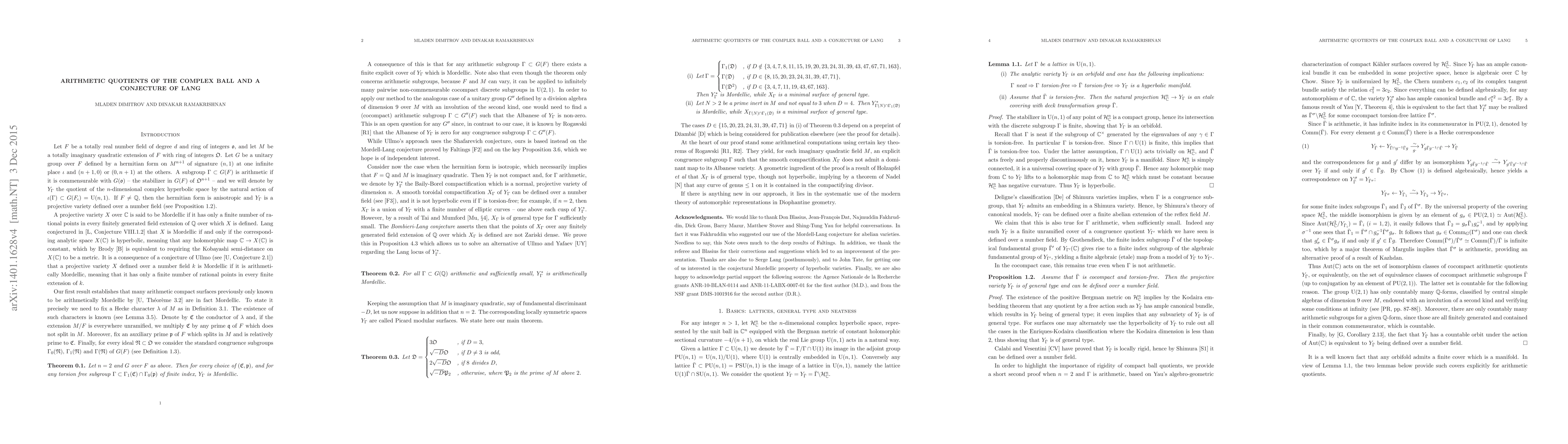 This paper proves that arithmetic quotients of the complex unit ball in $\mathbb{C}^n$ have only finitely many rational points over any finitely generated field extension of $\mathbb{Q}$, establishing their Mordellicity. The authors provide a new proof for compact hyperbolic surfaces using the Albanese and results from Faltings, and extend their methods to higher dimensions, solving a conjecture by Ullmo and Yafaev.