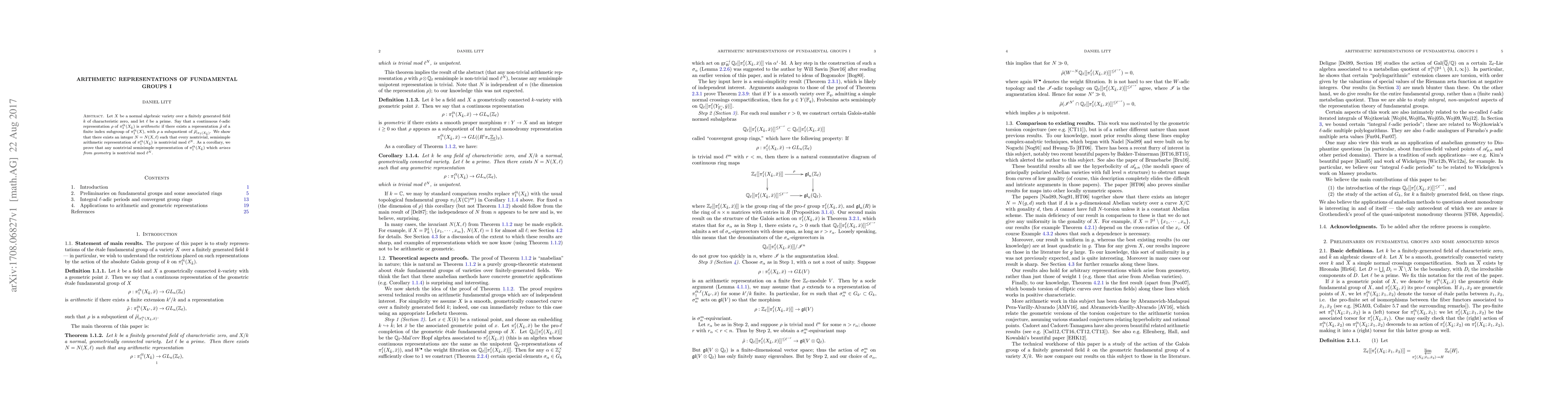 Let $X$ be a normal algebraic variety over a finitely generated field $k$ of characteristic zero, and let $\ell$ be a prime. Say that a continuous $\ell$-adic representation $\rho$ of $\pi_1^{\text{\'et}}(X_{\bar k})$ is arithmetic if there exists a representation $\tilde \rho$ of a finite index subgroup of $\pi_1^{\text{\'et}}(X)$, with $\rho$ a subquotient of $\tilde\rho|_{\pi_1(X_{\bar k})}$. We show that there exists an integer $N=N(X, \ell)$ such that every nontrivial, semisimple arithmetic representation of $\pi_1^{\text{\'et}}(X_{\bar k})$ is nontrivial mod $\ell^N$. As a corollary, we prove that any nontrivial semisimple representation of $\pi_1^{\text{\'et}}(X_{\bar k})$, which arises from geometry, is nontrivial mod $\ell^N$.