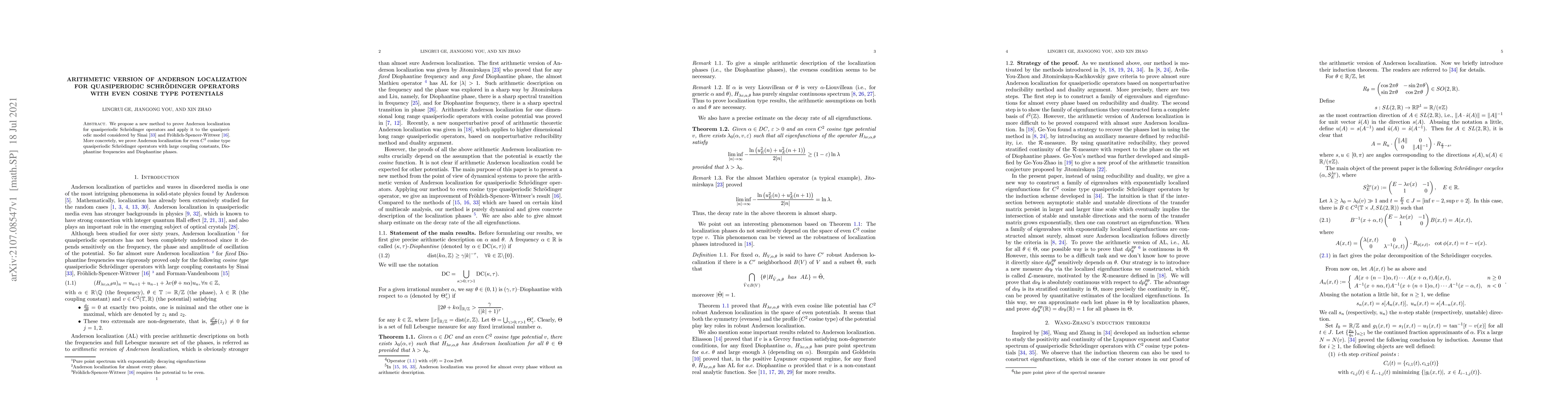 This paper introduces a novel method to demonstrate Anderson localization for quasiperiodic Schrödinger operators featuring even cosine-type potentials, specifically applying it to the Sinai model and proving localization under large coupling constants, Diophantine frequencies, and phases.