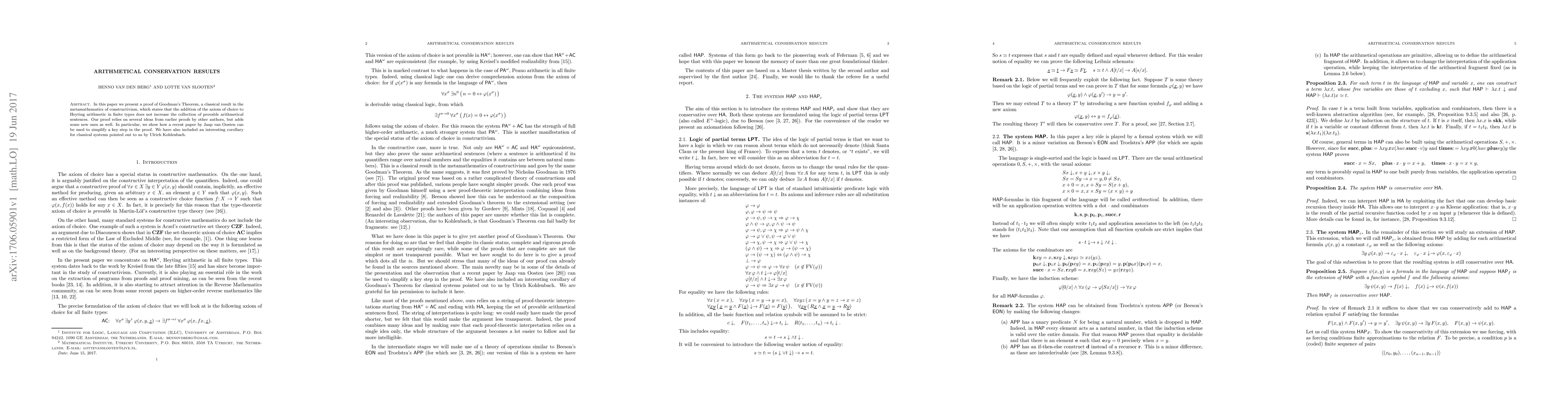 In this paper we present a proof of Goodman's Theorem, a classical result in the metamathematics of constructivism, which states that the addition of the axiom of choice to Heyting arithmetic in finite types does not increase the collection of provable arithmetical sentences. Our proof relies on several ideas from earlier proofs by other authors, but adds some new ones as well. In particular, we show how a recent paper by Jaap van Oosten can be used to simplify a key step in the proof. We have also included an interesting corollary for classical systems pointed out to us by Ulrich Kohlenbach.