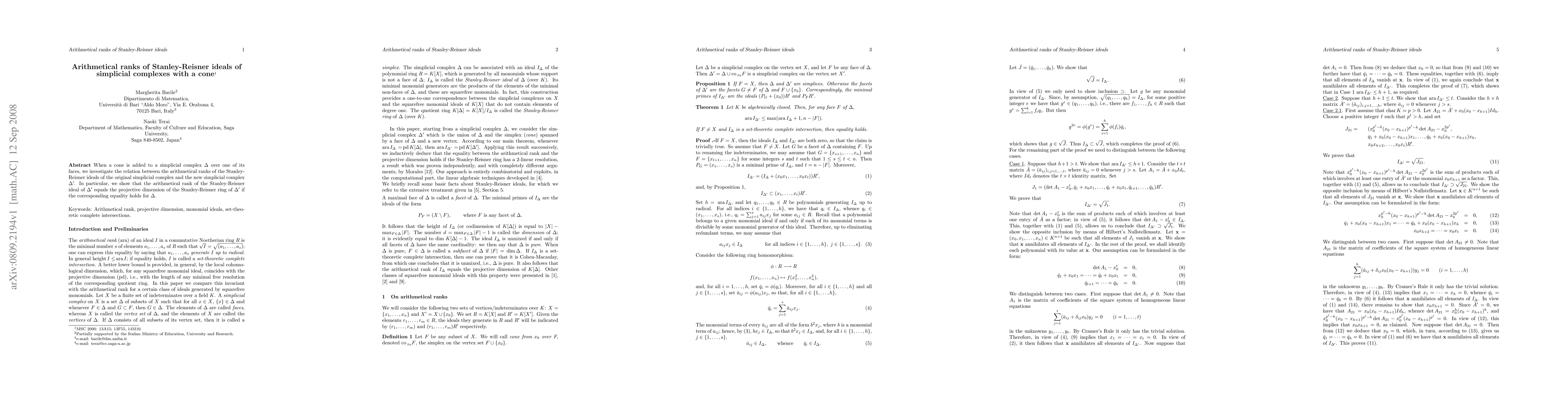 This paper examines how adding a cone to a simplicial complex influences the arithmetical ranks of Stanley-Reisner ideals, demonstrating that the rank of the new complex's ideal matches the projective dimension of its Stanley-Reisner ring when the original complex satisfies a specific equality.
