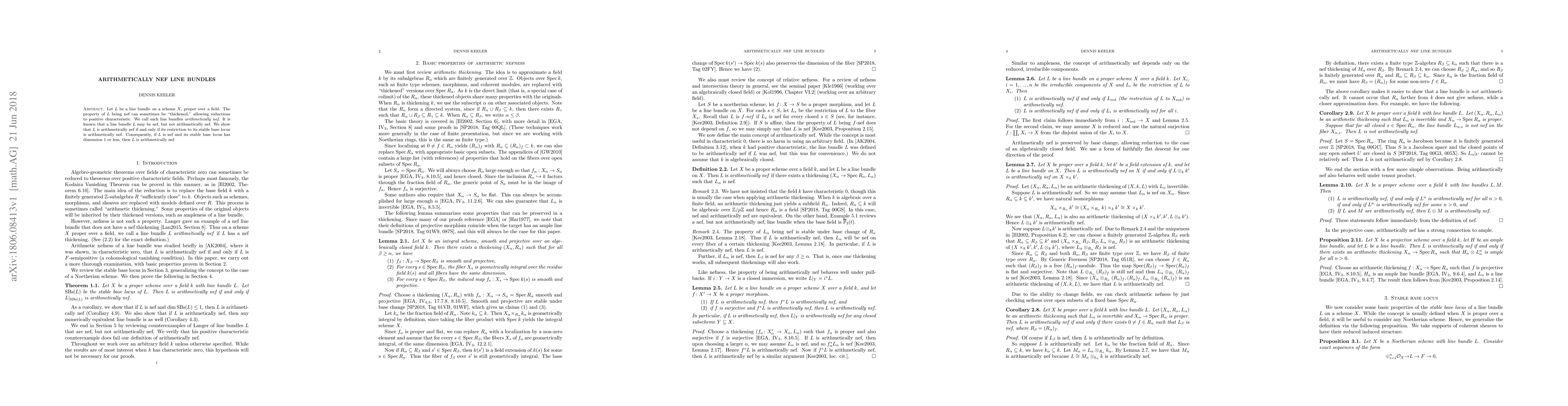 This paper explores arithmetically nef line bundles, which generalize nef line bundles to positive characteristic settings. It establishes that a line bundle is arithmetically nef if its restriction to its stable base locus retains this property, and demonstrates that a nef line bundle with a stable base locus of dimension 1 or less is also arithmetically nef.