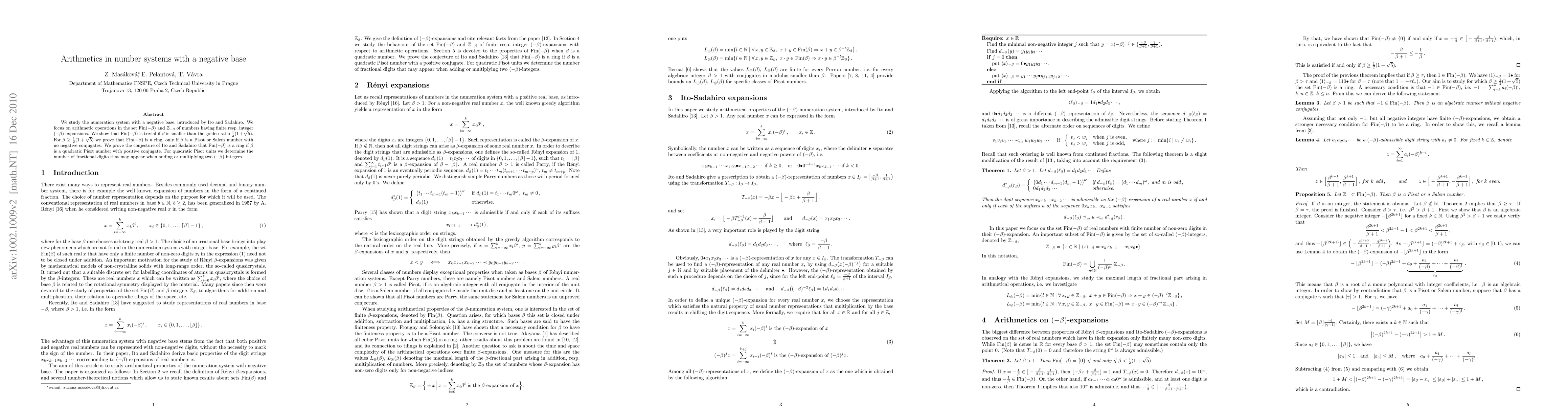 The work extends previous research on β-expansions by Ito and Sadahiro, providing a more detailed analysis of arithmetic operations in negative-base numeration systems and proving key conjectures.