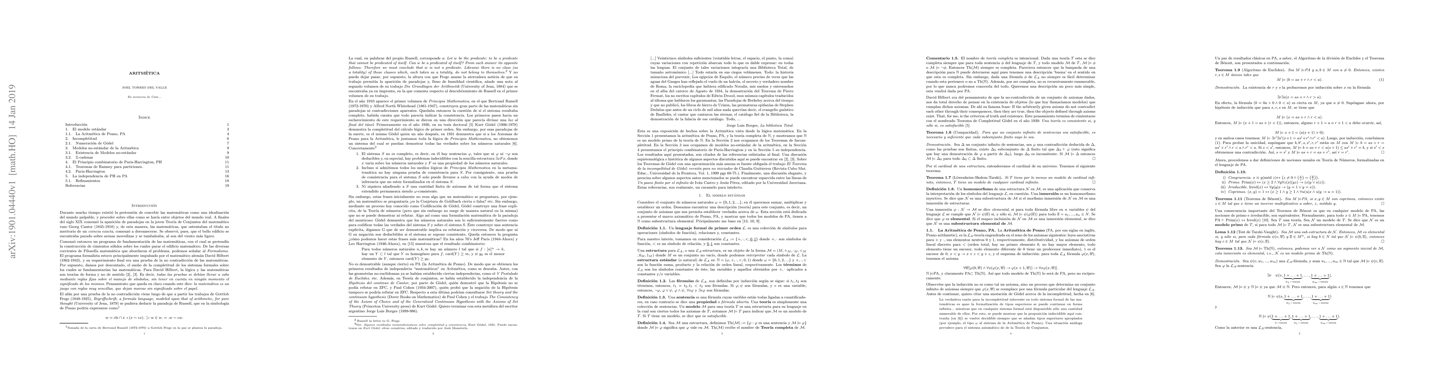This is an exposition of facts about Arithmetic with an approach via mathematical logic. In Section 1 we present Peano Arithmetic, PA, and the complete theory of $\mathbb{N}$, and we show that $\mathbb{N}$ is a prime model of the theory of $\mathbb{N}$. In Section 2 we deal with the Incompleteness Theorems. In Section 3 we deal with non-standard models of arithmetic, in Section 4 we present the Paris-Harrington principle and in Section 5 its independence. The results presented here are quoted from the references listed at the end.