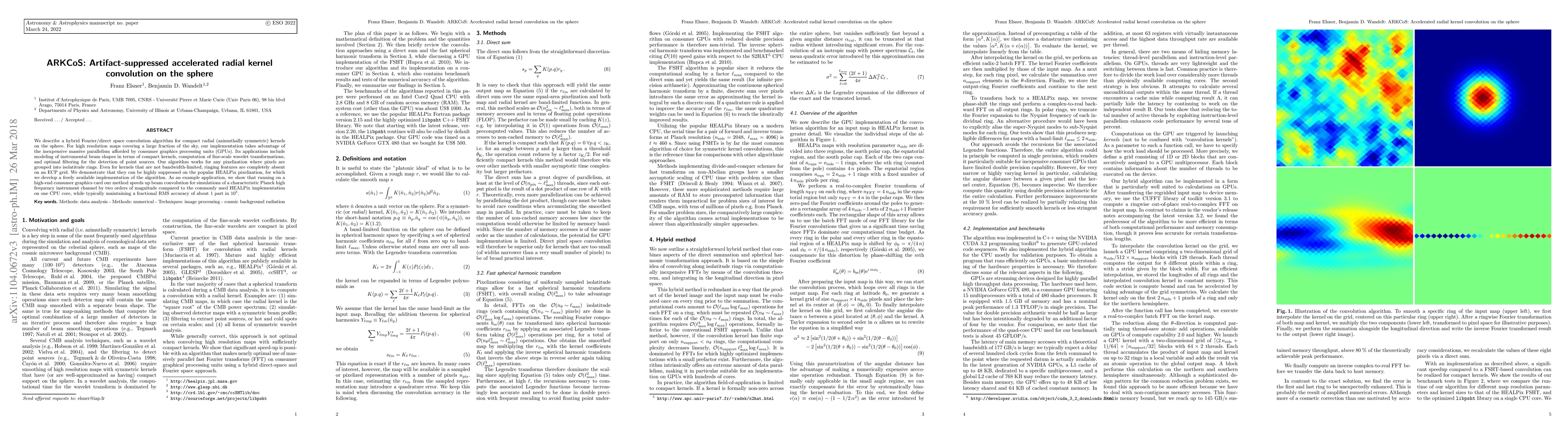 We describe a hybrid Fourier/direct space convolution algorithm for compact radial (azimuthally symmetric) kernels on the sphere. For high resolution maps covering a large fraction of the sky, our implementation takes advantage of the inexpensive massive parallelism afforded by consumer graphics processing units (GPUs). Applications involve modeling of instrumental beam shapes in terms of compact kernels, computation of fine-scale wavelet transformations, and optimal filtering for the detection of point sources. Our algorithm works for any pixelization where pixels are grouped into isolatitude rings. Even for kernels that are not bandwidth limited, ringing features are completely absent on an ECP grid. We demonstrate that they can be highly suppressed on the popular HEALPix pixelization, for which we develop a freely available implementation of the algorithm. As an example application, we show that running on a high-end consumer graphics card our method speeds up beam convolution for simulations of a characteristic Planck high frequency instrument channel by two orders of magnitude compared to the commonly used HEALPix implementation on one CPU core while maintaining at typical a fractional RMS accuracy of about 1 part in 10^5.
