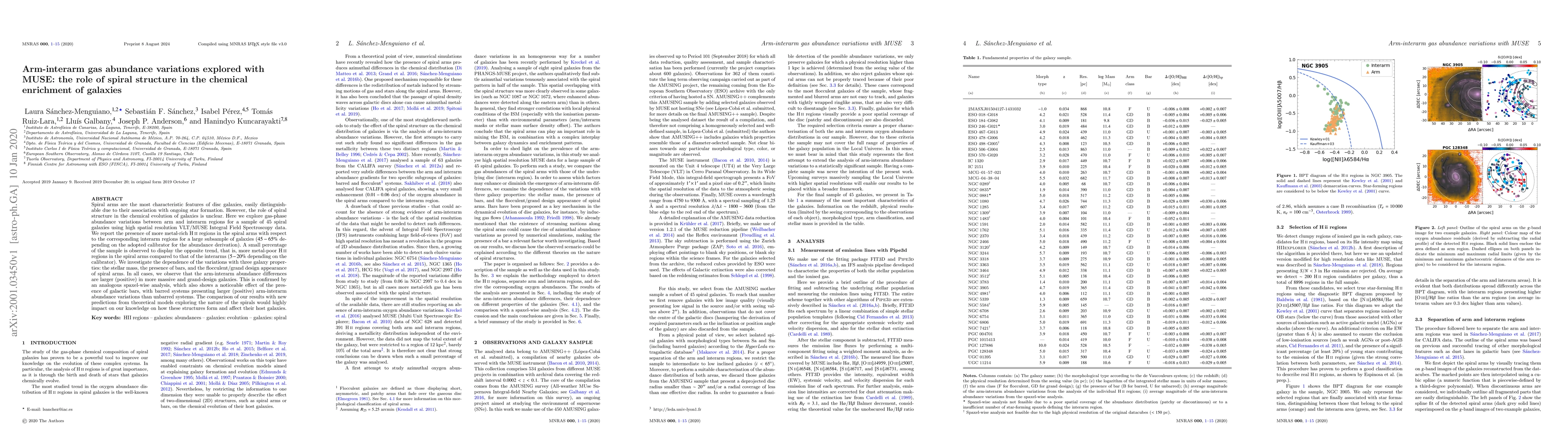 This study investigates gas-phase abundance variations between spiral arms and interarm regions in 45 spiral galaxies using MUSE data, finding more metal-rich HII regions in arms for most galaxies. The arm-interarm abundance differences are larger in more massive and grand-design galaxies, and barred systems show greater variations, suggesting spiral structure significantly influences chemical enrichment.