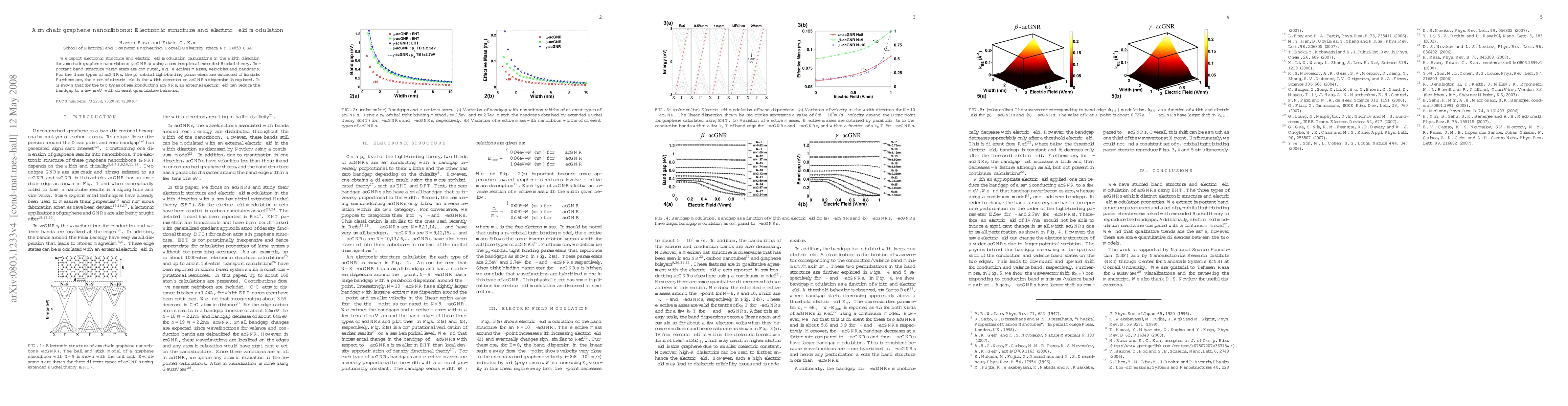 This study uses semi-empirical extended Hückel theory to calculate the electronic structure and electric field modulation in armchair graphene nanoribbons (acGNRs), determining key band structure parameters and showing that external electric fields can significantly reduce the bandgap in semiconducting acGNRs.