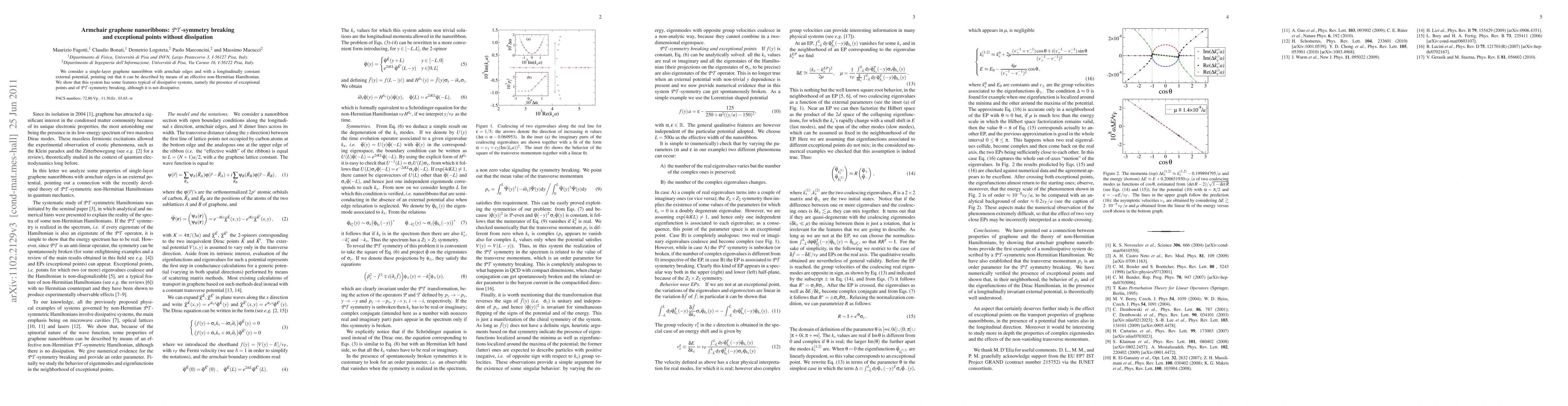 Summary: This paper explores armchair graphene nanoribbons under an external potential, demonstrating that their transport properties can be modeled with a non-Hermitian Hamiltonian. It reveals the emergence of exceptional points and PT-symmetry breaking, despite the system lacking dissipation.