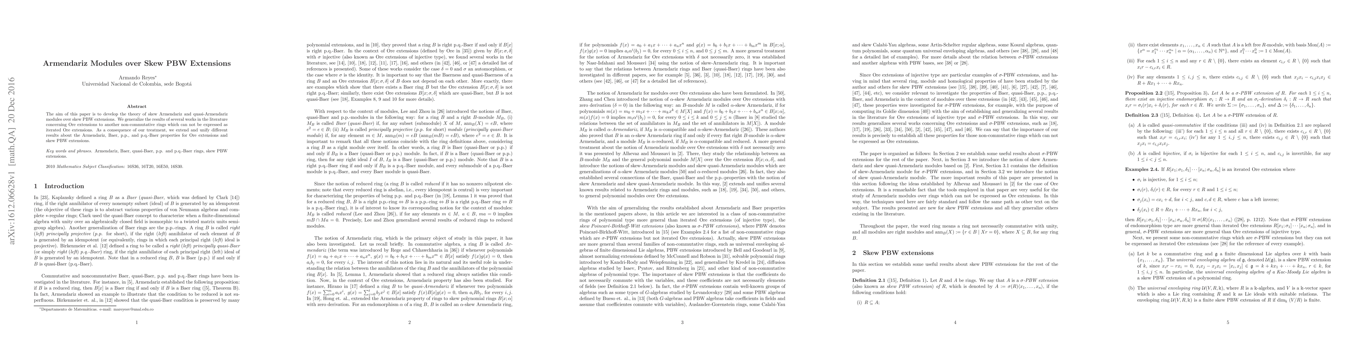 The work extends existing theories on Armendariz properties to skew PBW extensions, unifying and generalizing previous results, thus providing new insights into module structures over non-commutative rings.