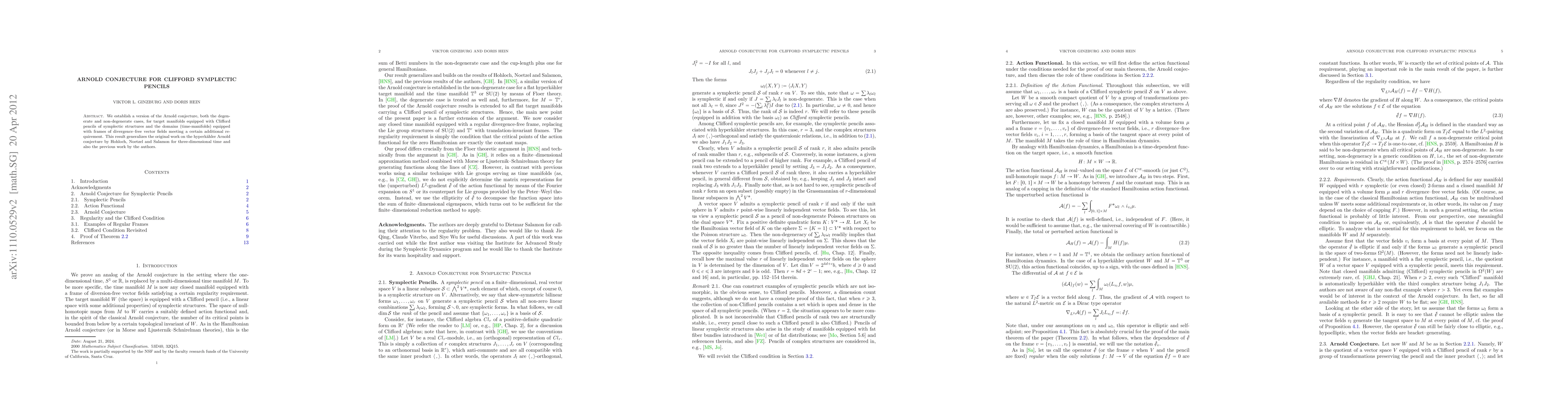 This paper proves the Arnold conjecture for Clifford symplectic pencils, addressing both degenerate and non-degenerate cases on manifolds with symplectic structures and time-manifolds with divergence-free vector fields, generalizing earlier hyperkähler results.