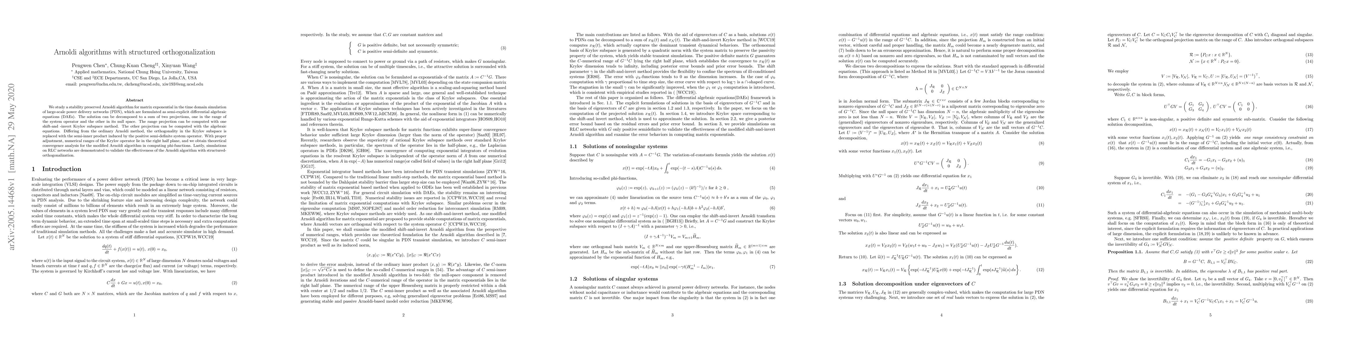 This paper proposes a stability-preserved Arnoldi algorithm for matrix exponential computation in large-scale power delivery networks, using a semi-inner product instead of orthogonality. The method is validated through simulations on RLC networks, demonstrating its effectiveness.