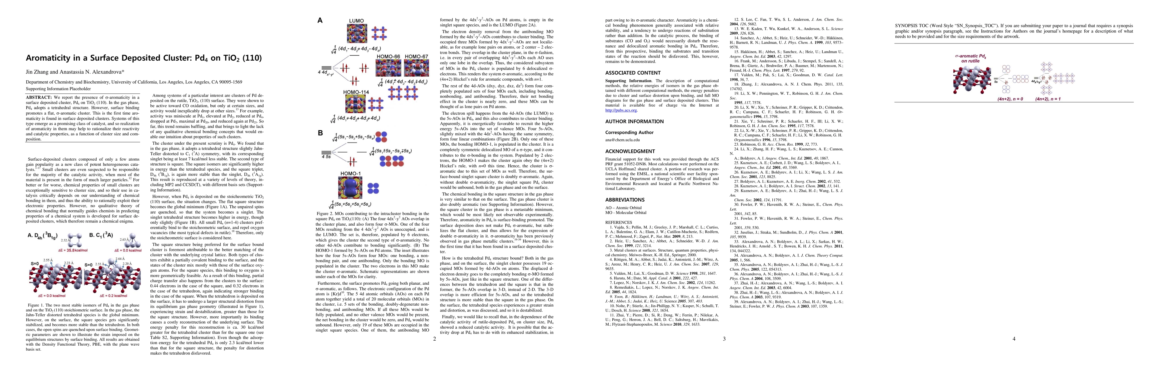 We report the presence of \sigma-aromaticity in a surface deposited cluster, Pd$_4$ on TiO$_2$ (110). In the gas phase, Pd$_4$ adopts a tetrahedral structure. However, surface binding promotes a flat, \sigma-aromatic cluster. This is the first time aromaticity is found in surface deposited clusters. Systems of this type emerge as a promising class of catalyst, and so realization of aromaticity in them may help to rationalize their reactivity and catalytic properties, as a function of cluster size and composition.