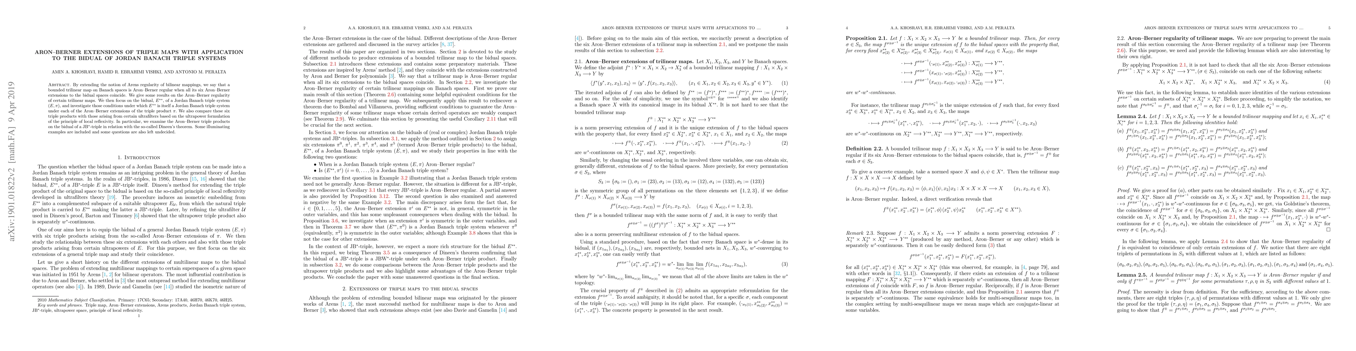 This paper extends the concept of Aron-Berner regularity to trilinear maps and explores the conditions under which the bidual of a Jordan Banach triple system retains its triple structure under these extensions. It also compares these extensions with those derived from ultrafilters and discusses their implications in relation to Dineen's theorem.