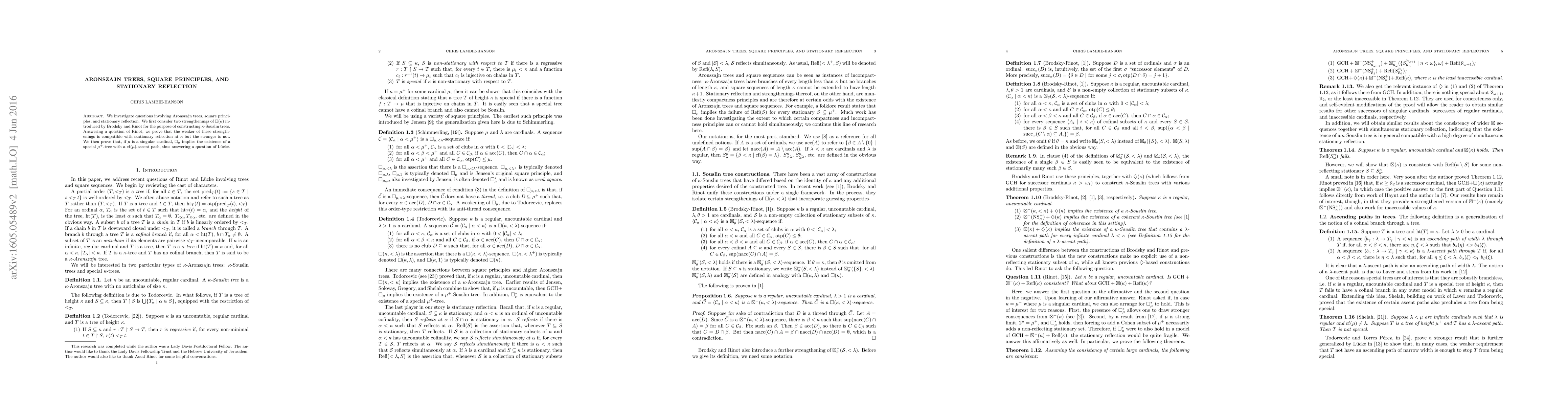 We investigate questions involving Aronszajn trees, square principles, and stationary reflection. We first consider two strengthenings of $\square(\kappa)$ introduced by Brodsky and Rinot for the purpose of constructing $\kappa$-Souslin trees. Answering a question of Rinot, we prove that the weaker of these strengthenings is compatible with stationary reflection at $\kappa$ but the stronger is not. We then prove that, if $\mu$ is a singular cardinal, $\square_\mu$ implies the existence of a special $\mu^+$-tree with a $\mathrm{cf}(\mu)$-ascent path, thus answering a question of L\"ucke.