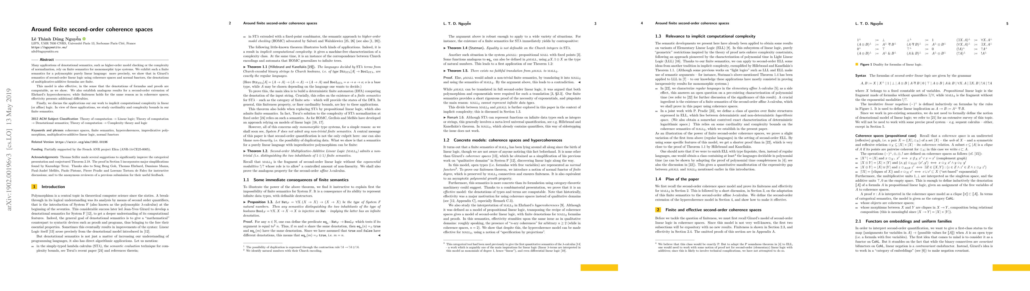 This paper establishes a finite semantics for a polymorphic purely linear language using coherence spaces and normal functors, showing that denotations of multiplicative-additive formulas are finite and computable.