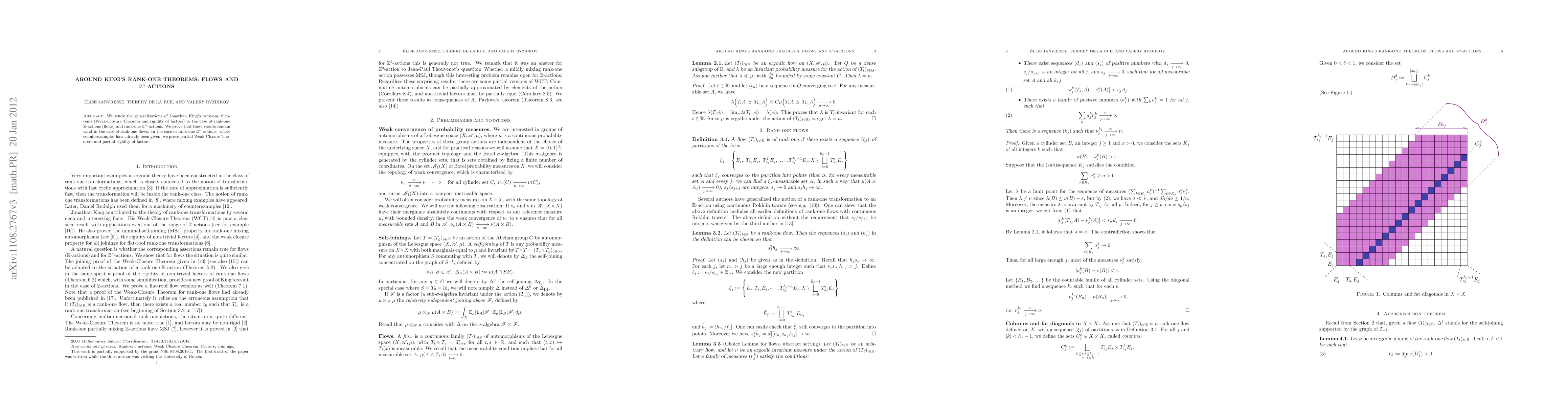 This paper generalizes Jonathan King's rank-one theorems to rank-one flows and rank-one Z^n-actions, proving the theorems' validity for flows but only partial results for Z^n-actions where counterexamples exist.