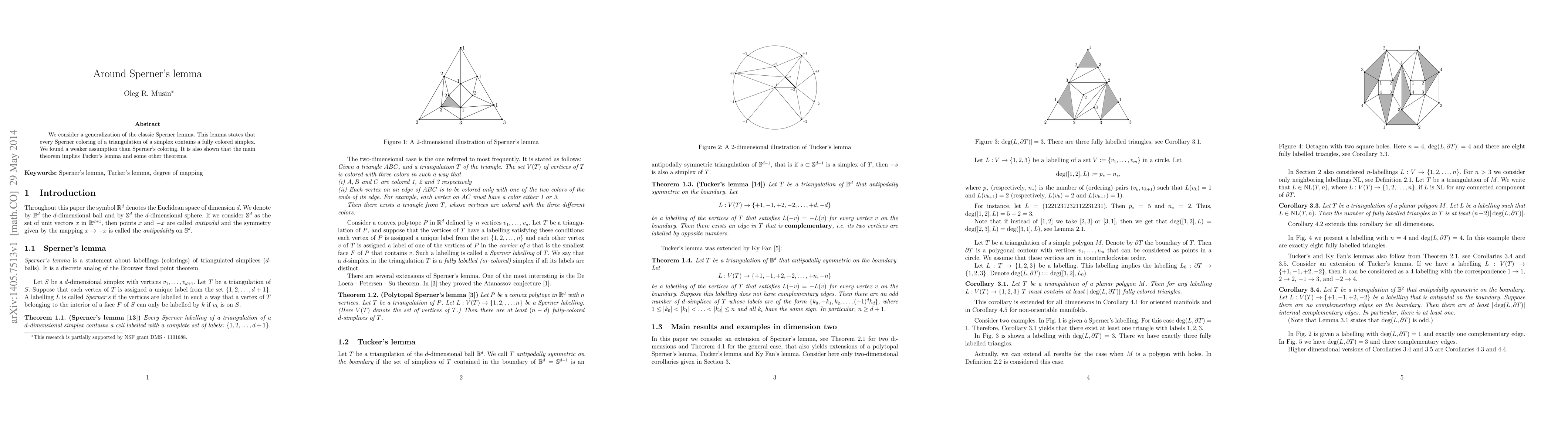 This paper generalizes Sperner's lemma by relaxing its coloring assumptions, demonstrating that the new conditions still imply Tucker's lemma and other related theorems. The findings suggest a broader applicability of the original lemma's principles.