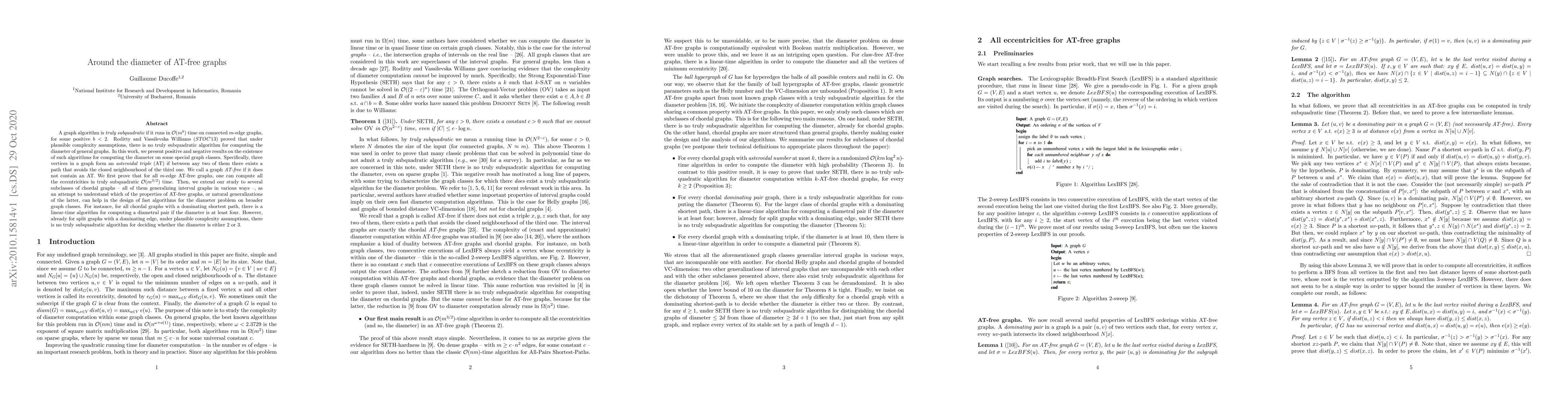This paper explores the existence of truly subquadratic algorithms for computing the diameter in specific graph classes, particularly AT-free graphs and several subclasses of chordal graphs. It proves that diameter computation in AT-free graphs can be done in O(m^(3/2)) time, while highlighting that no such subquadratic algorithm exists for split graphs with a dominating edge under plausible complexity assumptions.
