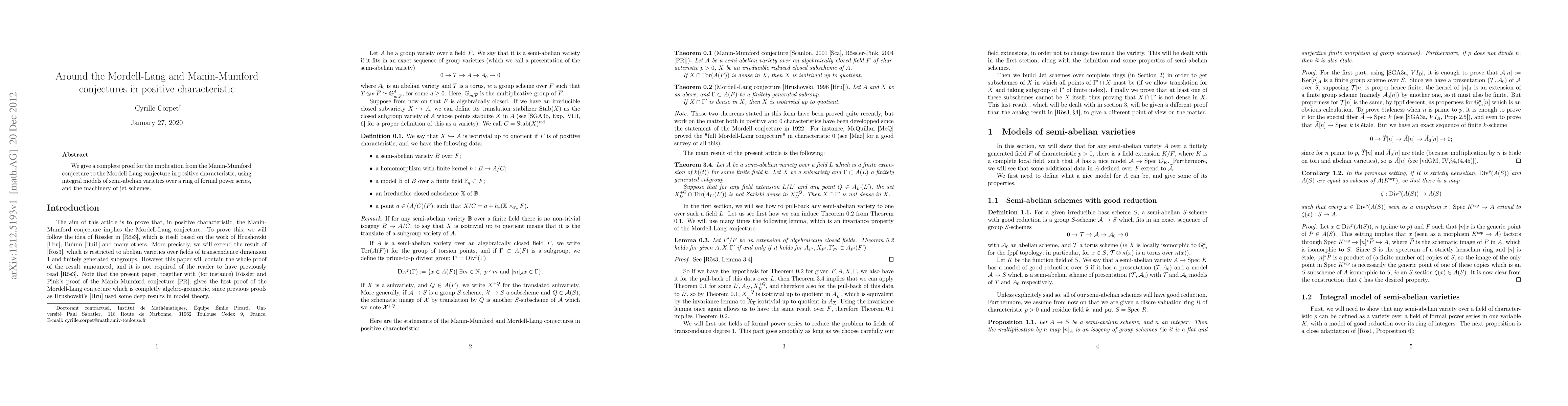 Summary: This paper provides a full proof for the implication from the Manin-Mumford conjecture to the Mordell-Lang conjecture in positive characteristic, leveraging integral models of semi-abelian varieties and the techniques of jet schemes.