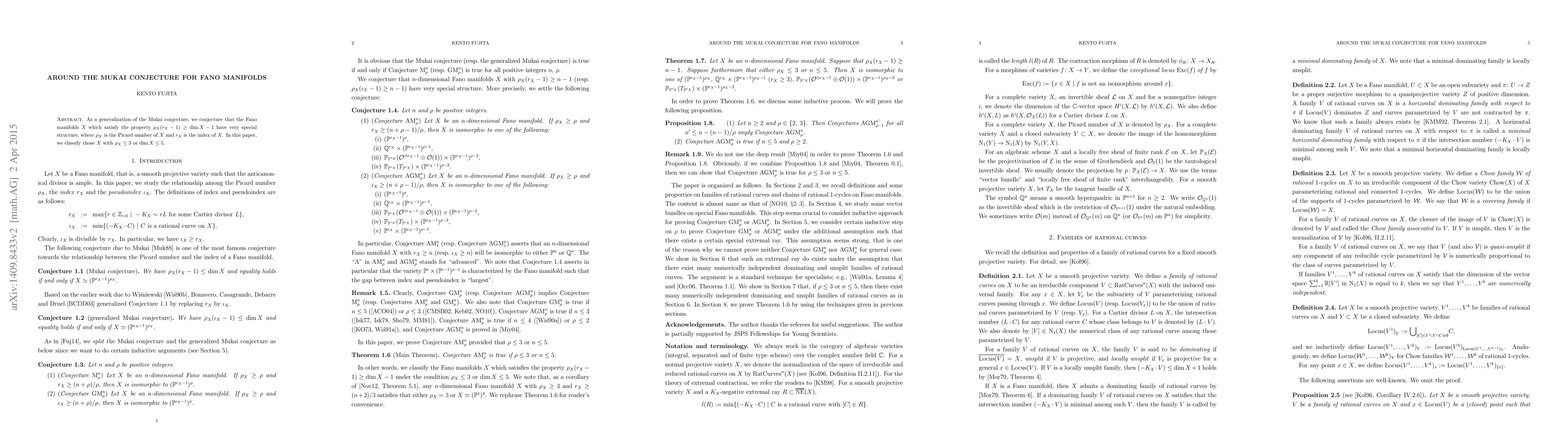 This paper generalizes the Mukai conjecture by proposing that Fano manifolds $X$ with $\rho_X(r_X-1)\geq\dim X-1$ possess unique structural properties. It classifies such manifolds under the conditions $\rho_X\leq 3$ or $\dim X\leq 5$.