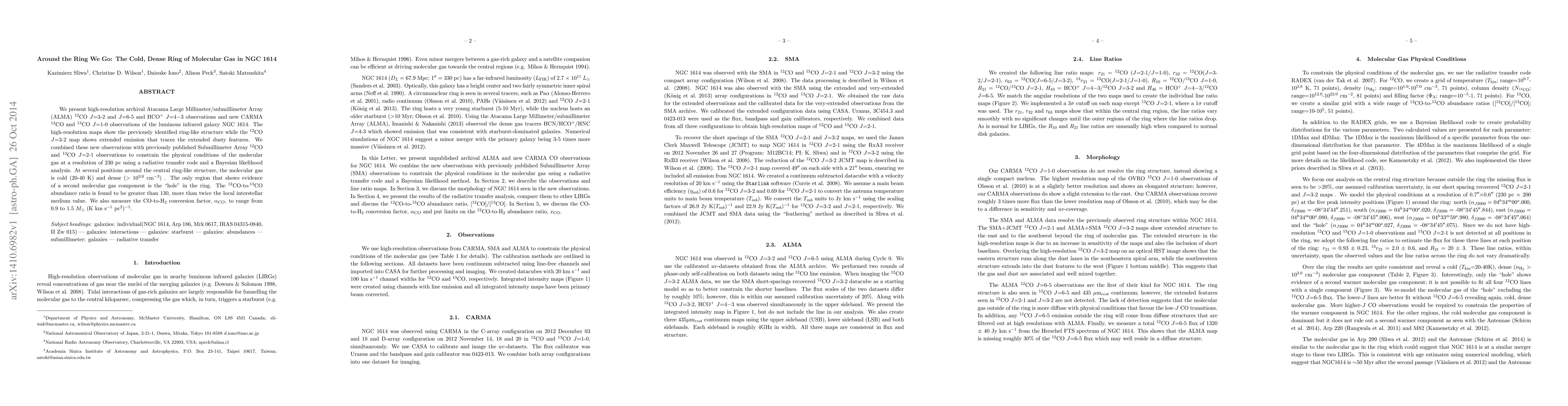 We present high-resolution archival Atacama Large Millimeter/submillimeter Array (ALMA) CO J=3-2 and J=6-5 and HCO+ J=4-3 observations and new CARMA CO and 13CO J=1-0 observations of the luminous infrared galaxy NGC 1614. The high-resolution maps show the previously identified ring-like structure while the CO J=3-2 map shows extended emission that traces the extended dusty features. We combined these new observations with previously published Submillimeter Array CO and 13CO J=2-1 observations to constrain the physical conditions of the molecular gas at a resolution of 230 pc using a radiative transfer code and a Bayesian likelihood analysis. At several positions around the central ring-like structure, the molecular gas is cold (20-40 K) and dense (> 10^{3.0} cm^{-3}) . The only region that shows evidence of a second molecular gas component is the "hole" in the ring. The CO-to-13CO abundance ratio is found to be greater than 130, more than twice the local interstellar medium value. We also measure the CO-to-H_{2} conversion factor, alpha_{CO}, to range from 0.9 to 1.5 M_sol (K km/s pc^{2})^{-1}.