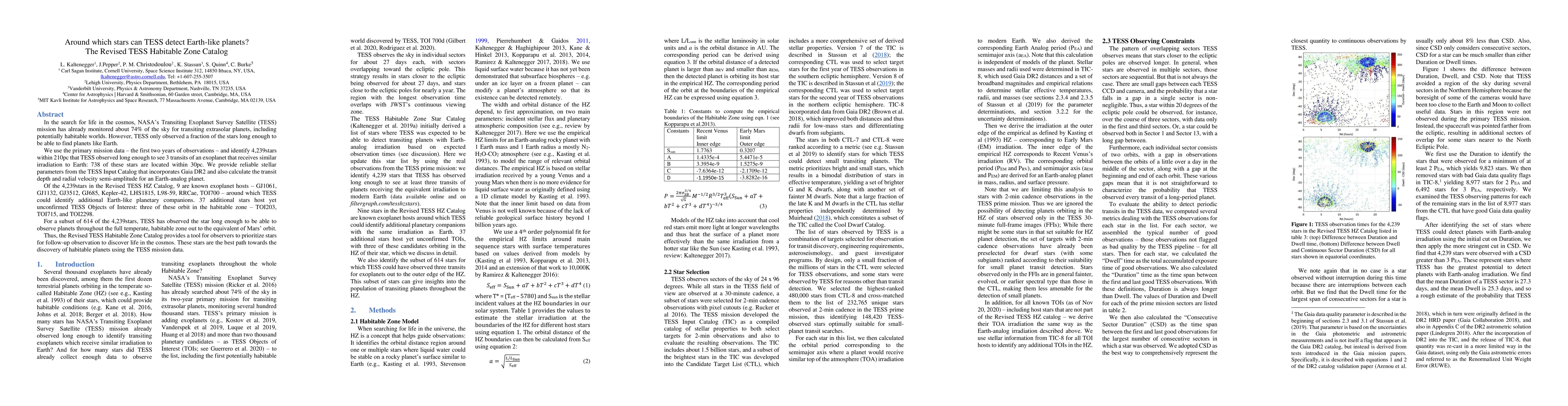 The Revised TESS Habitable Zone Catalog identifies 4,239 stars within 210pc where NASA's TESS mission can detect Earth-like planets, including 738 within 30pc. Nine known exoplanet hosts and 37 unconfirmed TESS Objects of Interest are highlighted, with 614 stars observed long enough to detect planets throughout the habitable zone.