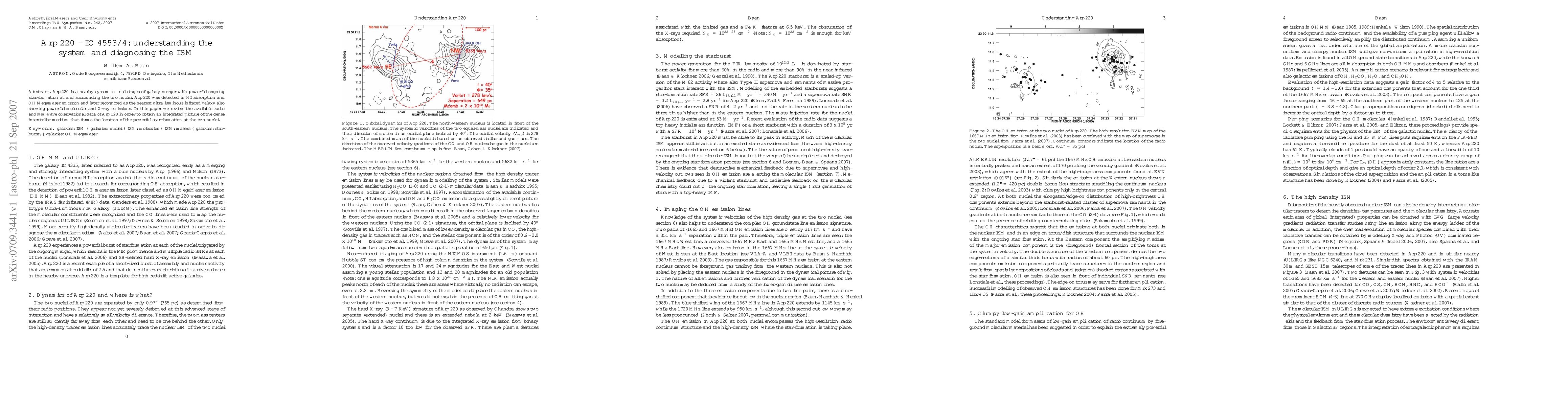 This paper reviews radio and mm-wave observations of Arp 220 to understand its dense interstellar medium and the powerful star-formation occurring at the two merging galactic nuclei. The study aims to provide an integrated picture of the system's interstellar medium.