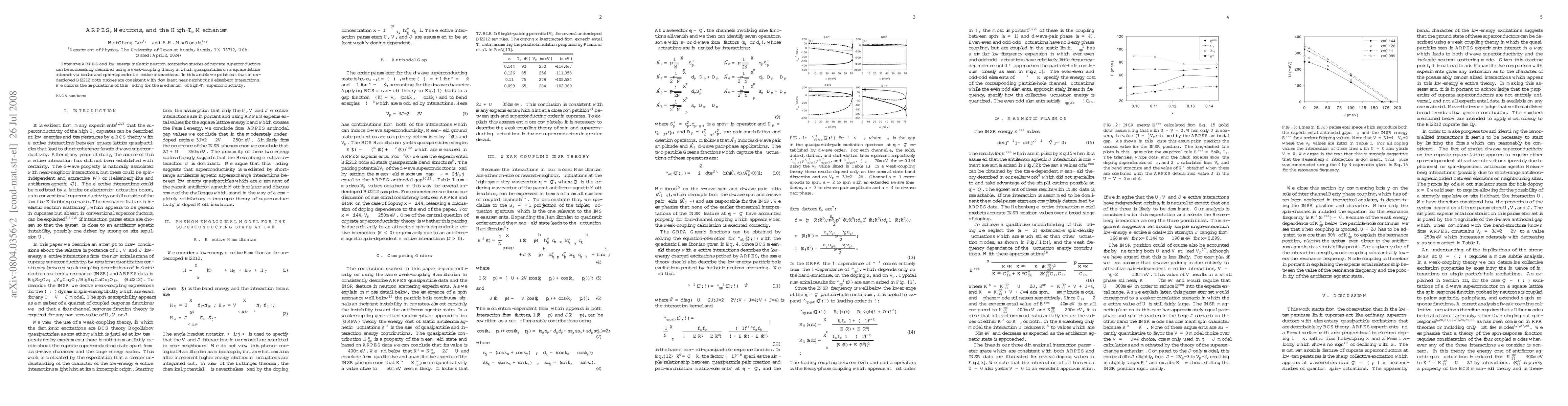 Extensive ARPES and low-energy inelastic neutron scattering studies of cuprate superconductors can be successfully described using a weak-coupling theory in which quasiparticles on a square lattice interact via scalar and spin-dependent effective interactions. In this article we point out that in Bi$_2$Sr$_2$Ca$_{1-x}$Y$_x$Cu$_2$O$_8$ (Bi2212) both probes are consistent with dominant near-neighbour Heisenberg interactions. We discuss the implications of this finding for the mechanism of high-$T_c$ superconductivity.
