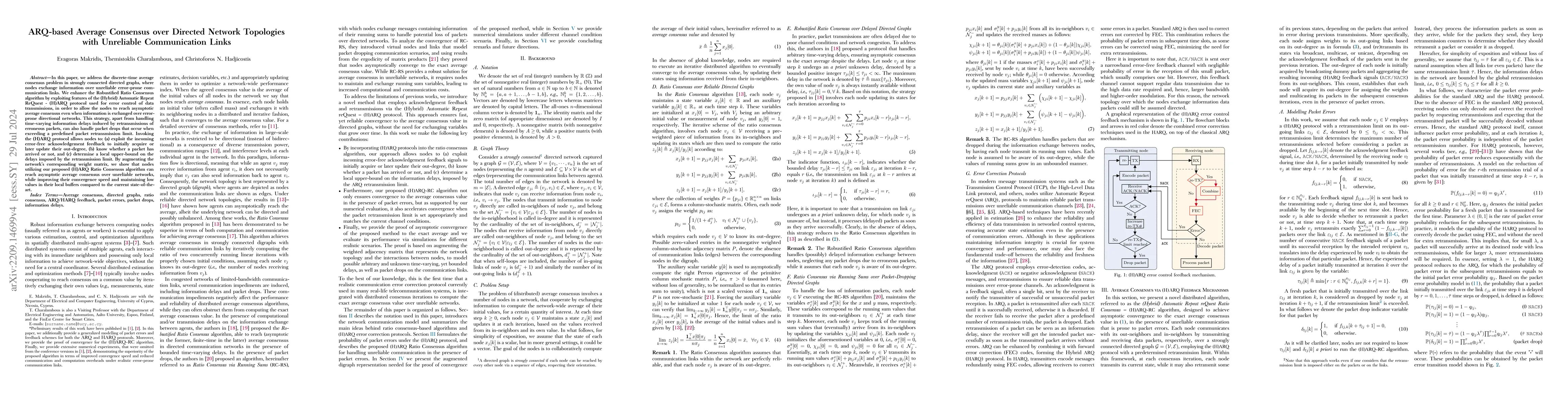 The paper introduces an ARQ-based Ratio Consensus algorithm that allows nodes to reach average consensus over unreliable directed networks by exploiting ARQ protocol features for error control and handling time-varying delays and packet drops.