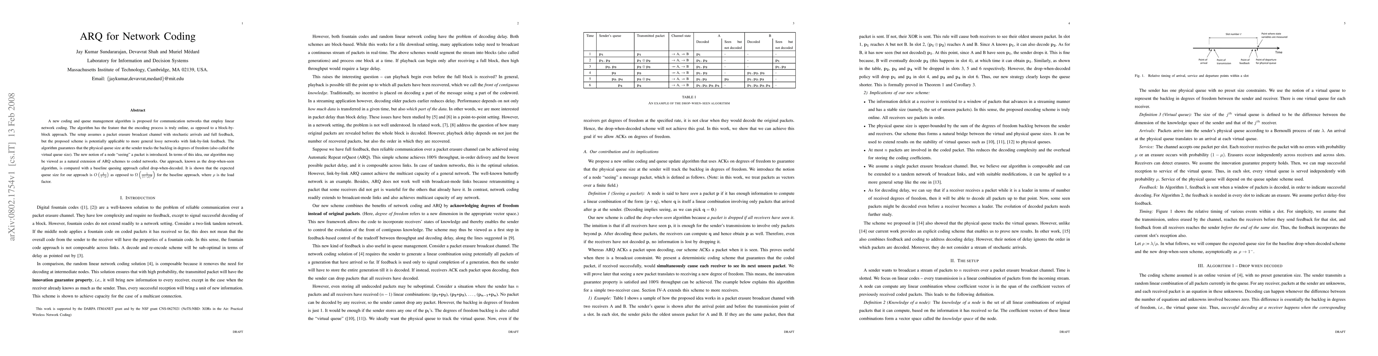 A new algorithm for network coding is proposed to optimize packet delivery in lossy networks, guaranteeing a physical queue size that tracks the backlog in degrees of freedom, outperforming a baseline approach.
