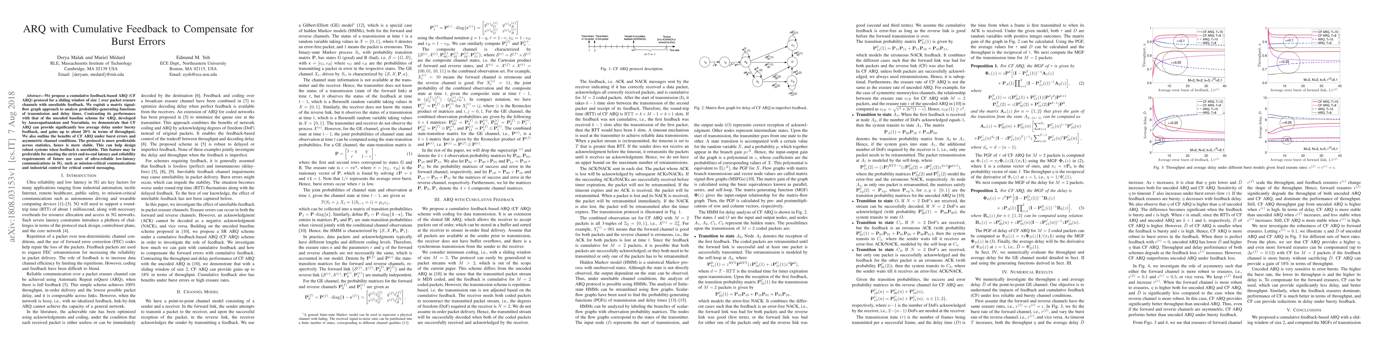 This paper introduces a CF ARQ protocol for packet erasure channels with unreliable feedback, showing it reduces average delay and improves throughput by up to 20% compared to an uncoded baseline. The protocol's stability under burst errors and asymmetric conditions makes it suitable for future use cases requiring ultra-reliable low-latency communications.