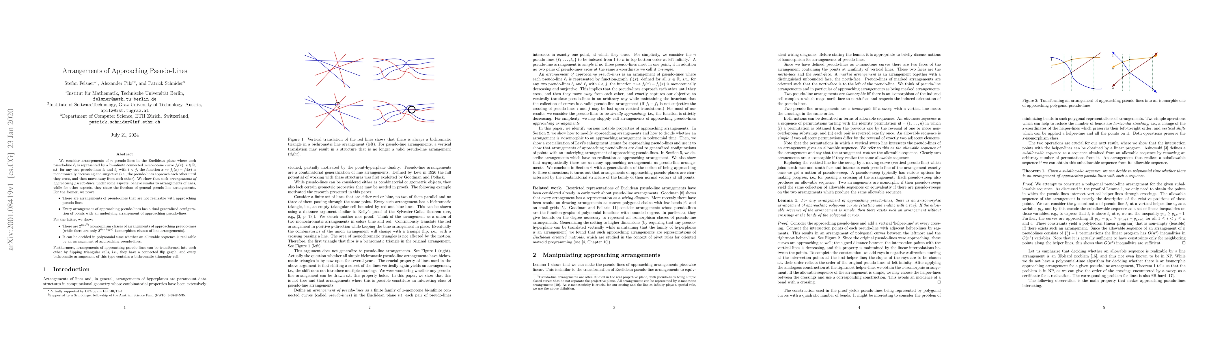 Research shows that arrangements of approaching pseudo-lines in a Euclidean plane exhibit both similarities with line arrangements and unique freedoms, including the ability to transform into each other through flipping triangular cells.