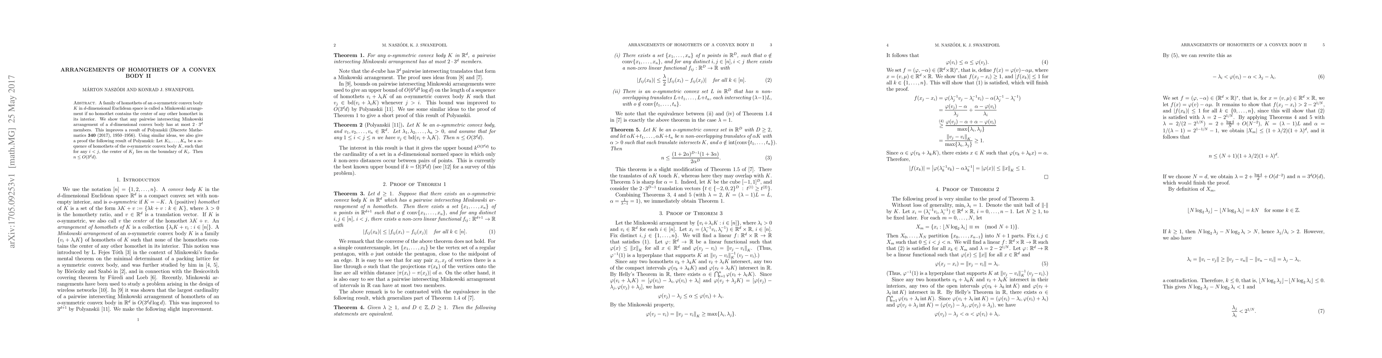 This paper proves that any pairwise intersecting Minkowski arrangement of a d-dimensional convex body has at most $2\cdot 3^d$ members, improving a previous result. It also provides a proof for Polyanskii's result on the upper bound of a sequence of homothets of an o-symmetric convex body.