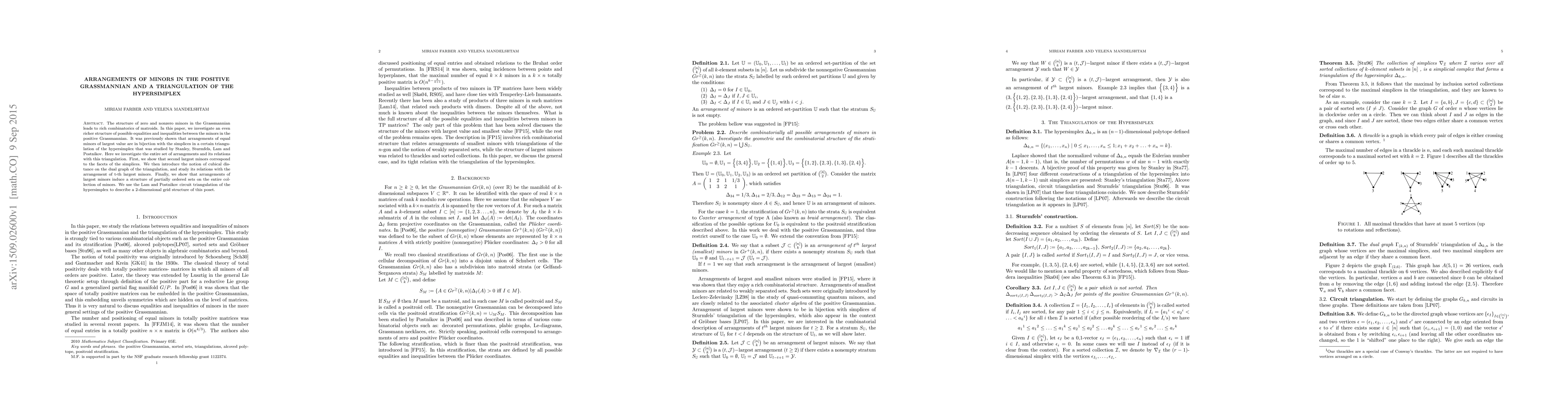 This paper explores the combinatorial structure of minors in the positive Grassmannian, showing that second largest minors correspond to simplices' facets in a triangulation of the hypersimplex. It introduces cubical distance on the dual graph and demonstrates a poset structure on all minors using the hypersimplex's circuit triangulation.
