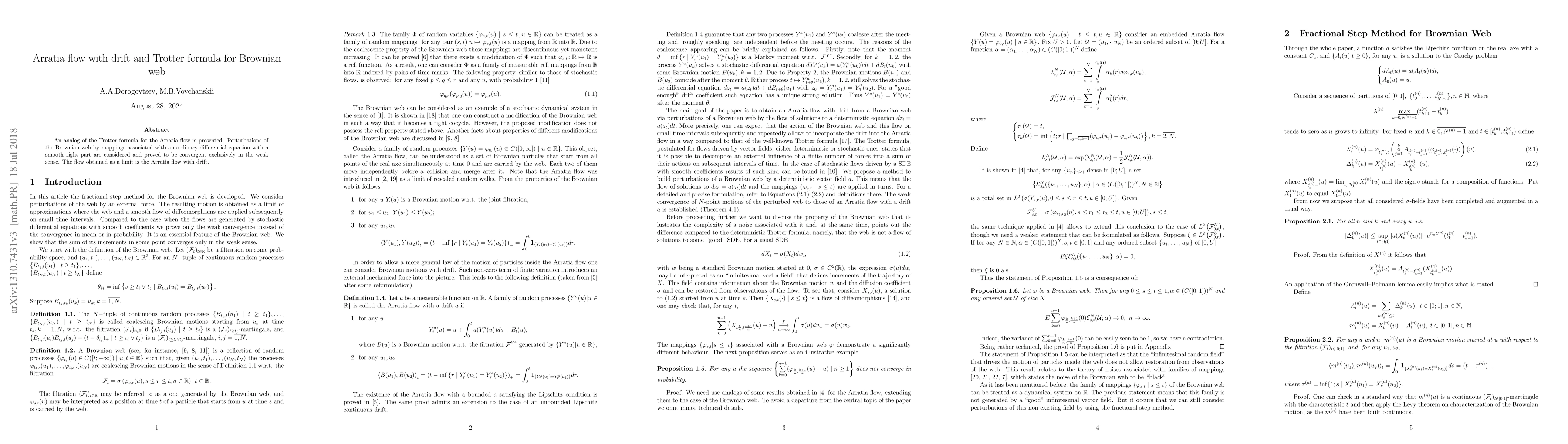 An analog of the Trotter formula for the Arratia flow is presented. Perturbations of the Brownian web by mappings associated with an ordinary differential equation with a smooth right part are considered and proved to be convergent exclusively in the weak sense. The flow obtained as a limit is the Arratia flow with drift.