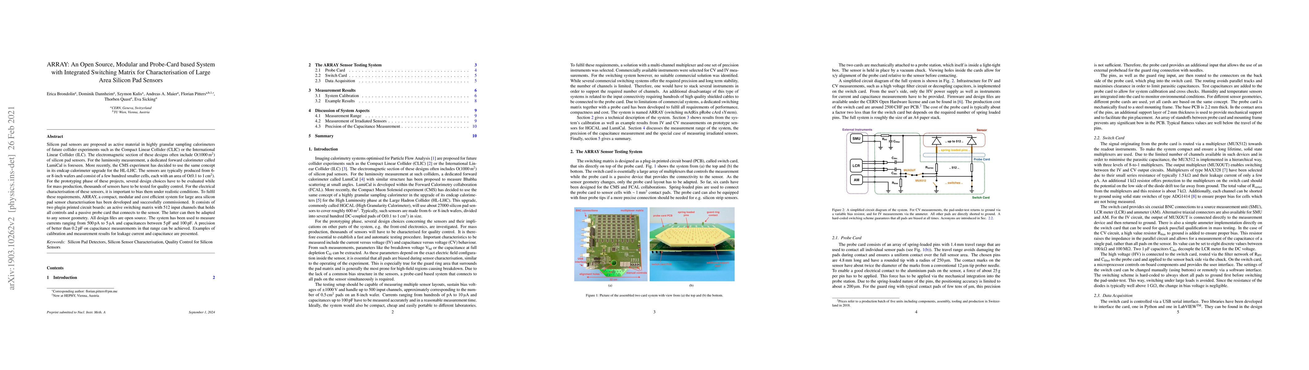 ARRAY is an open-source, modular system for characterizing large area silicon pad sensors used in future collider experiments. It features an integrated switching matrix and probe card, enabling precise measurements of currents and capacitances, and is designed for both prototyping and mass production quality control.