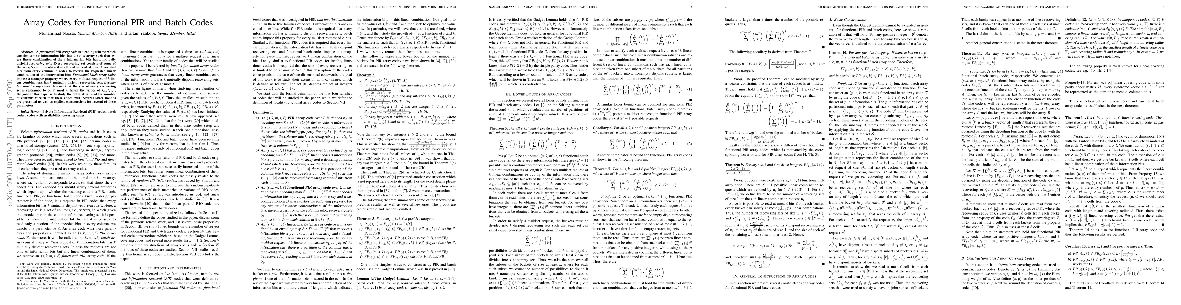 This paper investigates functional PIR and batch array codes that facilitate efficient retrieval of linear combinations of information bits with locality constraints, focusing on determining the optimal number of columns needed for their existence. It provides lower bounds and constructions for various parameters.