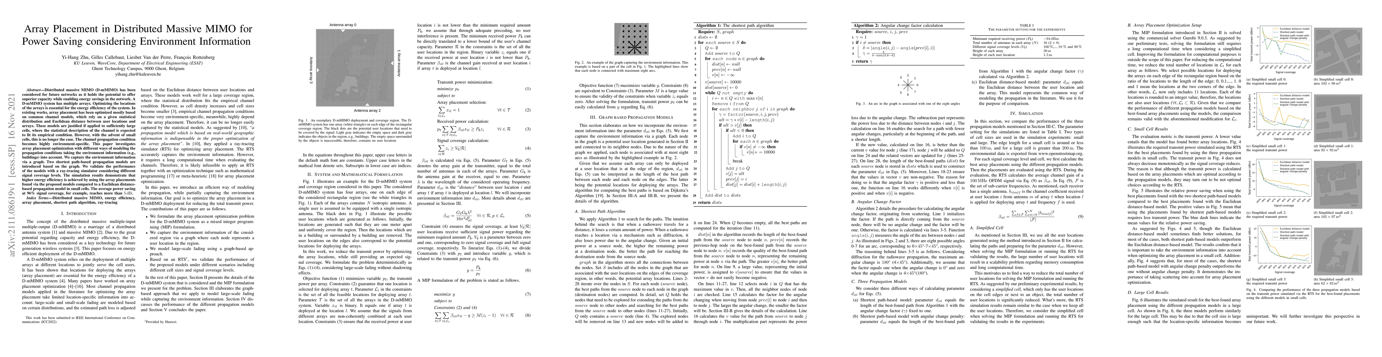 Distributed massive MIMO (D-mMIMO) has been considered for future networks as it holds the potential to offer superior capacity while enabling energy savings in the network. A D-mMIMO system has multiple arrays. Optimizing the locations of the arrays is essential for the energy efficiency of the system. In existing works, array placement has been optimized mostly based on common channel models, which rely on a given statistical distribution and Euclidean distance between user locations and arrays. These models are justified if applied to sufficiently large cells, where the statistical description of the channel is expected to fit its empirical condition. However, with the advent of small cells, this is no longer the case. The channel propagation condition becomes highly environment-specific. This paper investigates array placement optimization with different ways of modeling the propagation conditions taking the environment information (e.g., buildings) into account. We capture the environment information via a graph. Two shortest path-based propagation models are introduced based on the graph. We validate the performance of the models with a ray-tracing simulator considering different signal coverage levels. The simulation results demonstrate that higher energy efficiency is achieved by using the array placements found via the proposed models compared to a Euclidean distance-based propagation model in small cells. The average power saving at 96% signal coverage, for example, reaches more than 5 dB.
